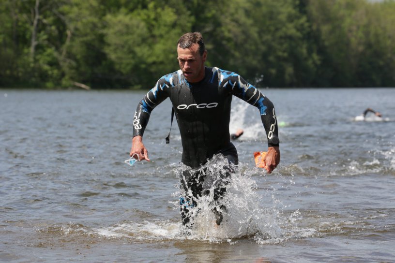 Gestern war es soweit, beim Löwentriathlon in Freillingen bei Hachenburg habe ich nach 10 Jahren meinen ersten Triathlon gemacht. Das Ganze war gedacht als Generalprobe für die EM nächsten Sonntag in Holland und lief richtig gut. In der Gesamtwertung wurde ich 3. und in der AK 1., alles was vor oder direkt hinter mir ins Ziel kam war deutlich jünger als ich so dass ich richtig zufrieden bin. Voll aus dem Training raus hat sich die Sprintdistanz (0,5/21/5) ungewohnt schnell angefühlt aber bei der EM über die doppelte, olympische Distanz wird es sicher eher noch schneller werden. 1.01h gesamt zeigte die Uhr im Ziel. Zum Glück wurde der See in den letzten Tagen noch wärmer, 18 Grad waren top. Mittwochs lag die Wassertemperatur nur bei 14 Grad was für mich deutlich zu kalt ist. Aber um es mit den Worten meiner kleinen Tochter (5) zu sagen „nicht reden, nicht heulen, kämpfen!“ (keine Ahnung wo sie den Spruch aufgeschnappt hat). Die Sonne und 20 Grad Außentemperatur haben den Tag zu einem optimalen Wettkampftag gemacht, eine voll gesperrte Bundesstraße brachte viel Tempo auf dem Rad und eine kurzweilige Laufrunde ließ die abschließende Disziplin schnell vergehen. Glücklicherweise lag das aber auch an meinem Lauftempo und daher freue ich mich jetzt einfach, dass es in 7 Tagen endlich richtig rund geht.