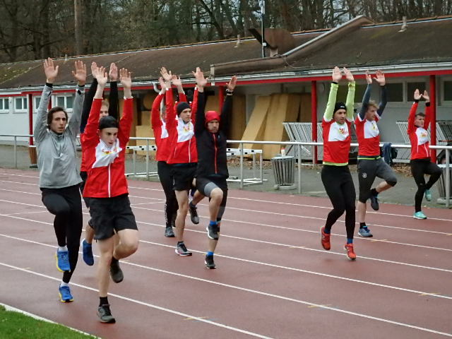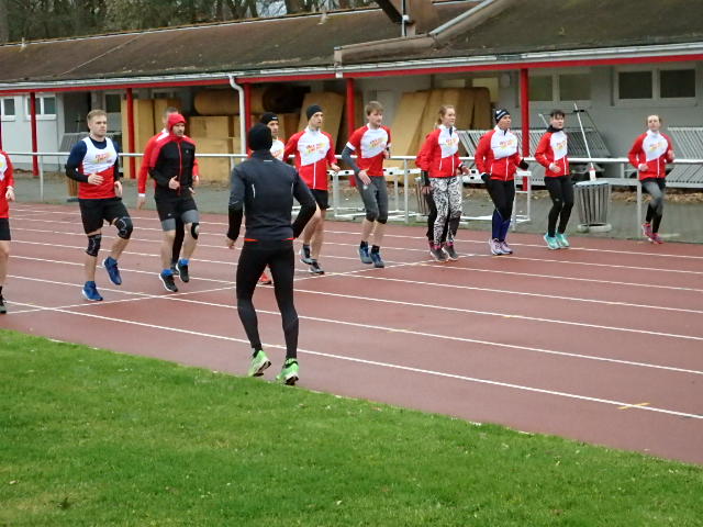 Zum Abschluss wartete dann ein Intervalltraining im Stadion. Nach einlaufen, aktivierender Gymnastik und Lauf ABC standen dann 5x400m im 5k Renntempo bei 200m Trabpause, 5.000m im Halbmarathontempo bei 600-800m Trabpause und noch mal 5x400m im 5k Renntempo bei 200m Trabpause auf dem Programm. So anstrengend wie es sich liest war es auch. Alle waren sich am Ende einig, so etwas zieht man nur in der Gruppe durch.