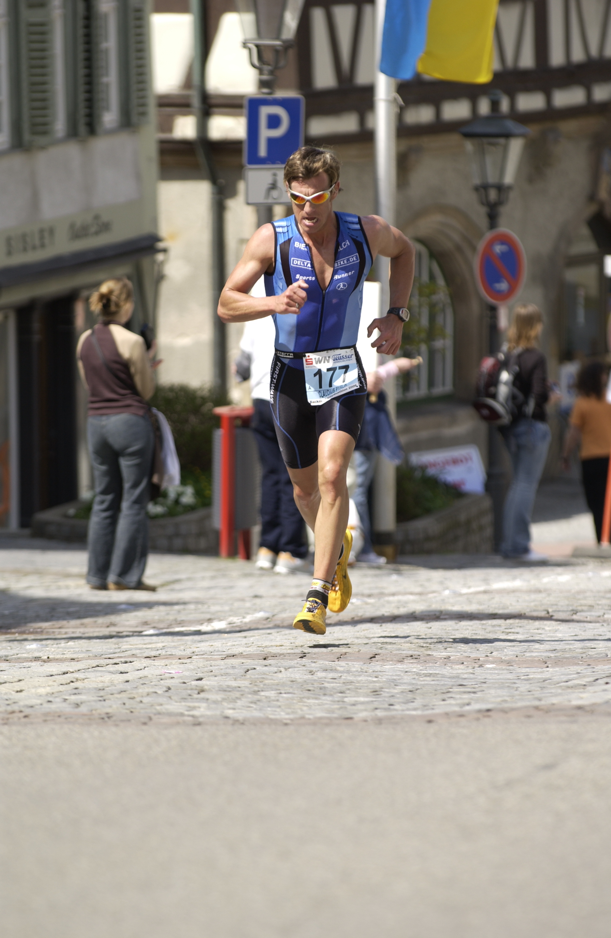 Damit hatte ich eine optimale Generalprobe für die zwei Wochen später stattfindenden Deutschen Duathlonmeisterschaften in Backnang gelegt. Trotzdem sollte es bei den Meisterschaften nach meinem katastrophalen sechsten Platz beim letzten Jahr nur für den zweiten Platz und damit den Vizetitel reichen. Das war zwar eine Steigerung, bei der ich auf gleicher Strecke immerhin fünf Minuten schneller als beim letzten Auftritt war, doch merkte ich, dass mir berufsbedingt einige Radkilometer fehlten, die ich zum Erreichen einer besseren Zeit auf dem Fahrrad benötigt hätte. Am Laufen scheiterte es nicht, meine Zeiten waren besser als die aller anderen, lediglich im zweiten Laufabschnitt verlor ich einige Sekunden. Dass ich dabei meine Altersklasse ,die M30, gewann und mich zumindest dort über den Titel freuen konnte, war ein positiver Nebeneffekt.