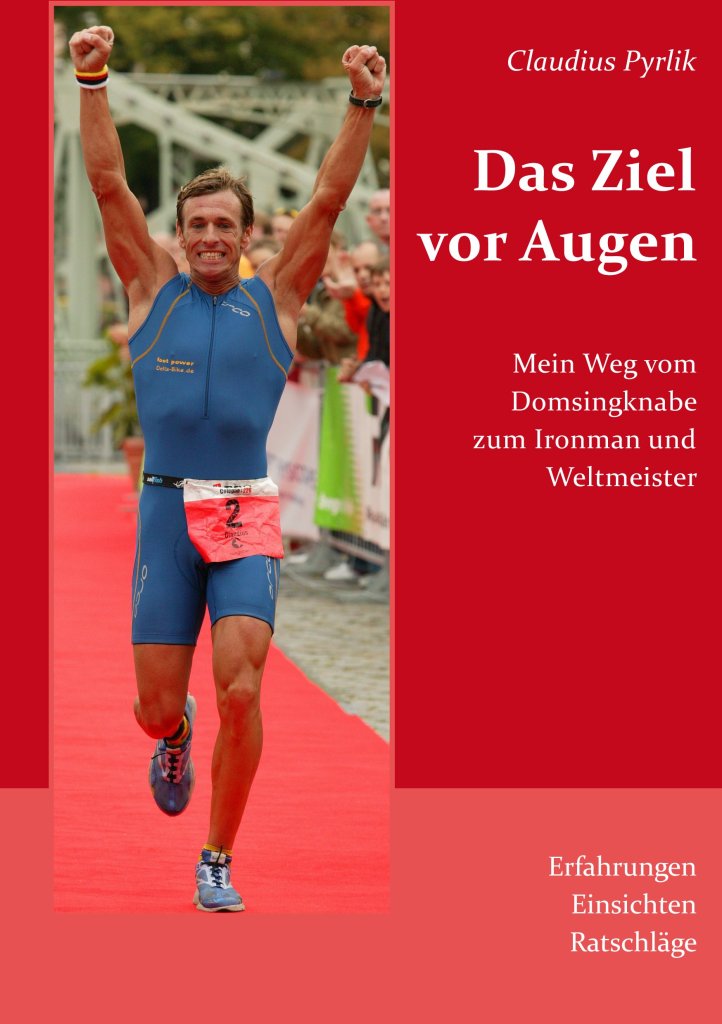 Das Ziel vor Augen – Mein Weg vom Domsingknabe zum Ironman und Weltmeister, ein Buch nicht nur für Sportler, sondern für alle, die an einem ungewöhnlichen und erfolgreichen Lebensweg Interesse haben. 11 Farbfotos begleiten den sehr flüssig zu lesenden Text. Der Autor, Claudius Pyrlik studierte an der Justus-Liebig-Universität Gießen Sport und Politik und war 15 Jahre aktiver Triathlet. In seiner langen Erfolgsliste finden sich zahlreiche Siege über alle Distanzen, Top Platzierungen bei Ironman Rennen und drei Weltmeistertitel. Als asthmakranker Schüler war der damalige Limburger Domsingknabe weit entfernt von sportlicher Betätigung und fand erst über den Fußball Zugang zum Sport, ehe er nach dem Abitur seine sportliche Laufbahn als Triathlet begann. Claudius Pyrlik schildert in seinem Buch seine Entwicklung, berichtet von Trainings- und Wettkampferfahrungen, gibt Einblicke in die Szene und wartet mit wertvollen Tipps auf. Gleichzeitig erzählt er sehr emotional von den Auswirkungen der zeitraubenden Sportart auf die unmittelbare Beziehung zu Lebenspartnerinnen und dem sozialen Umfeld allgemein und lässt den Leser am Spagat zwischen Hochleistungssport und Agenturgründung teilhaben.