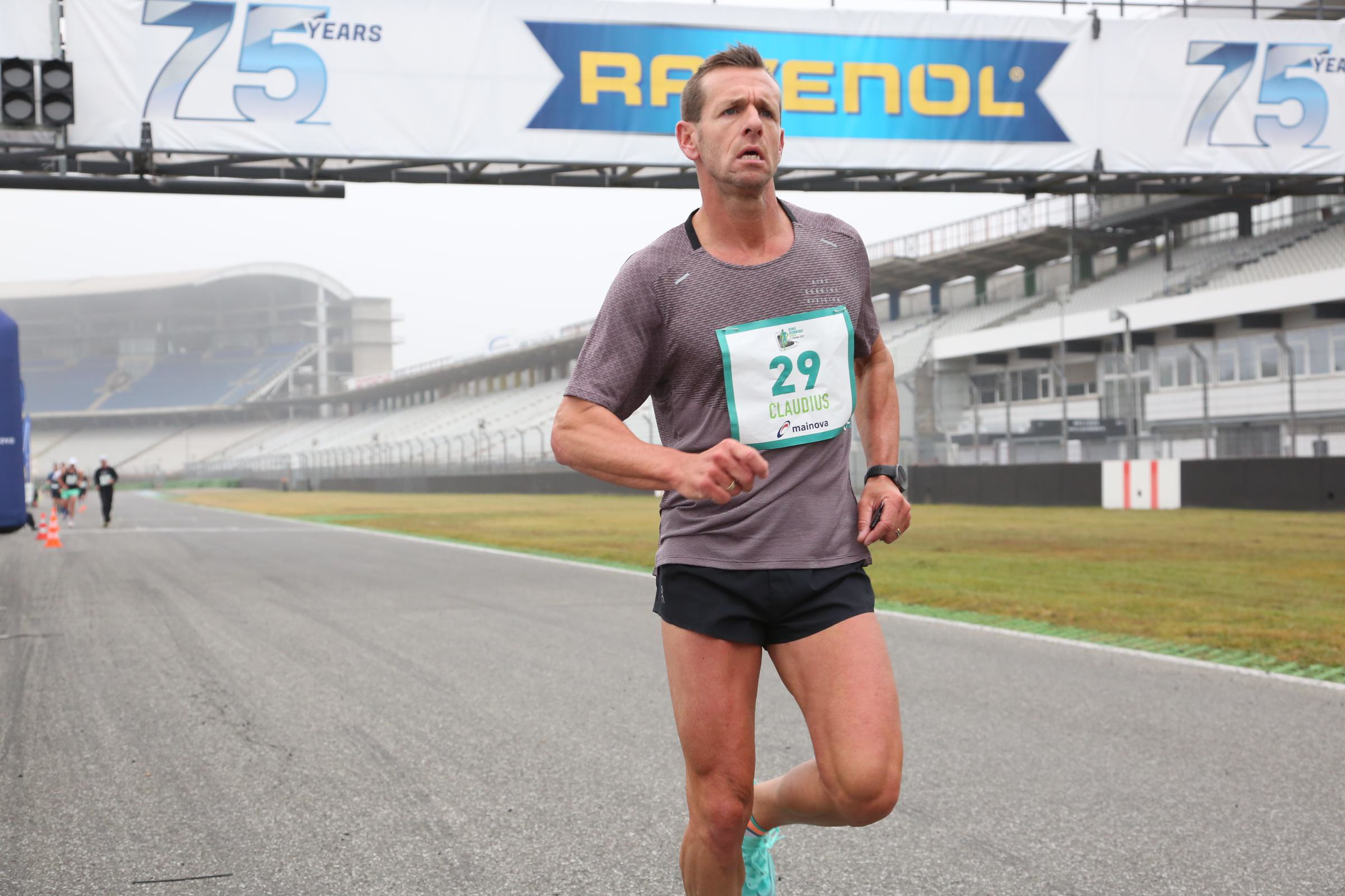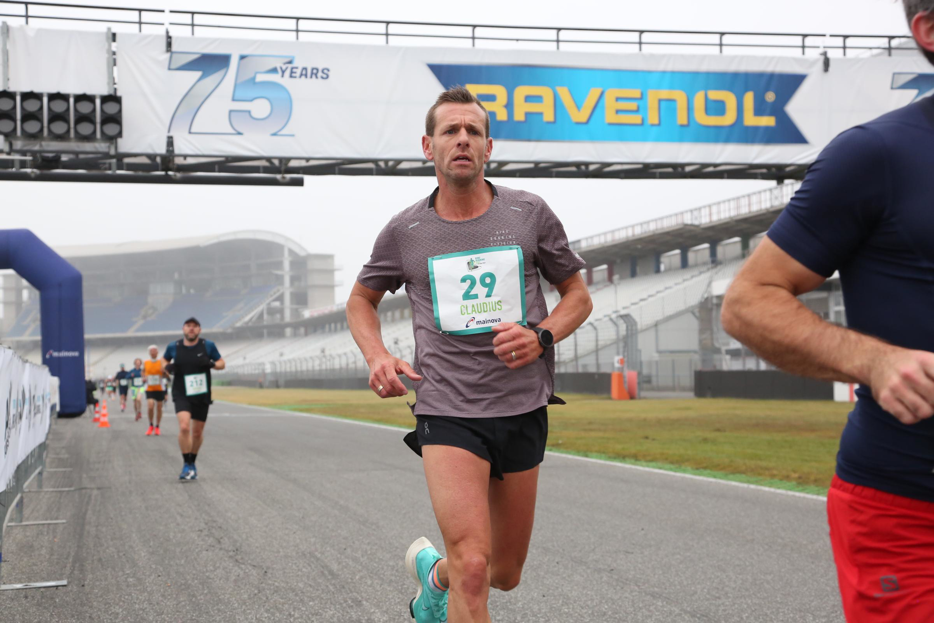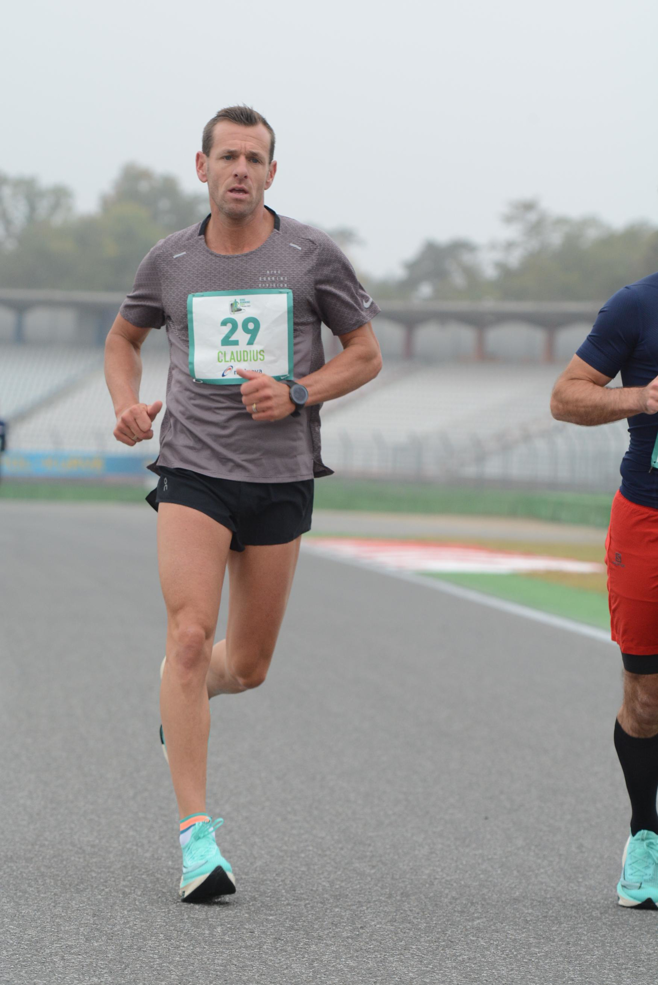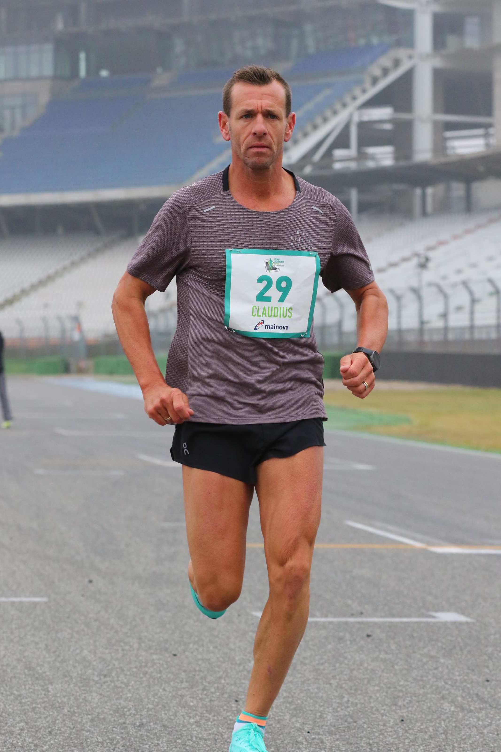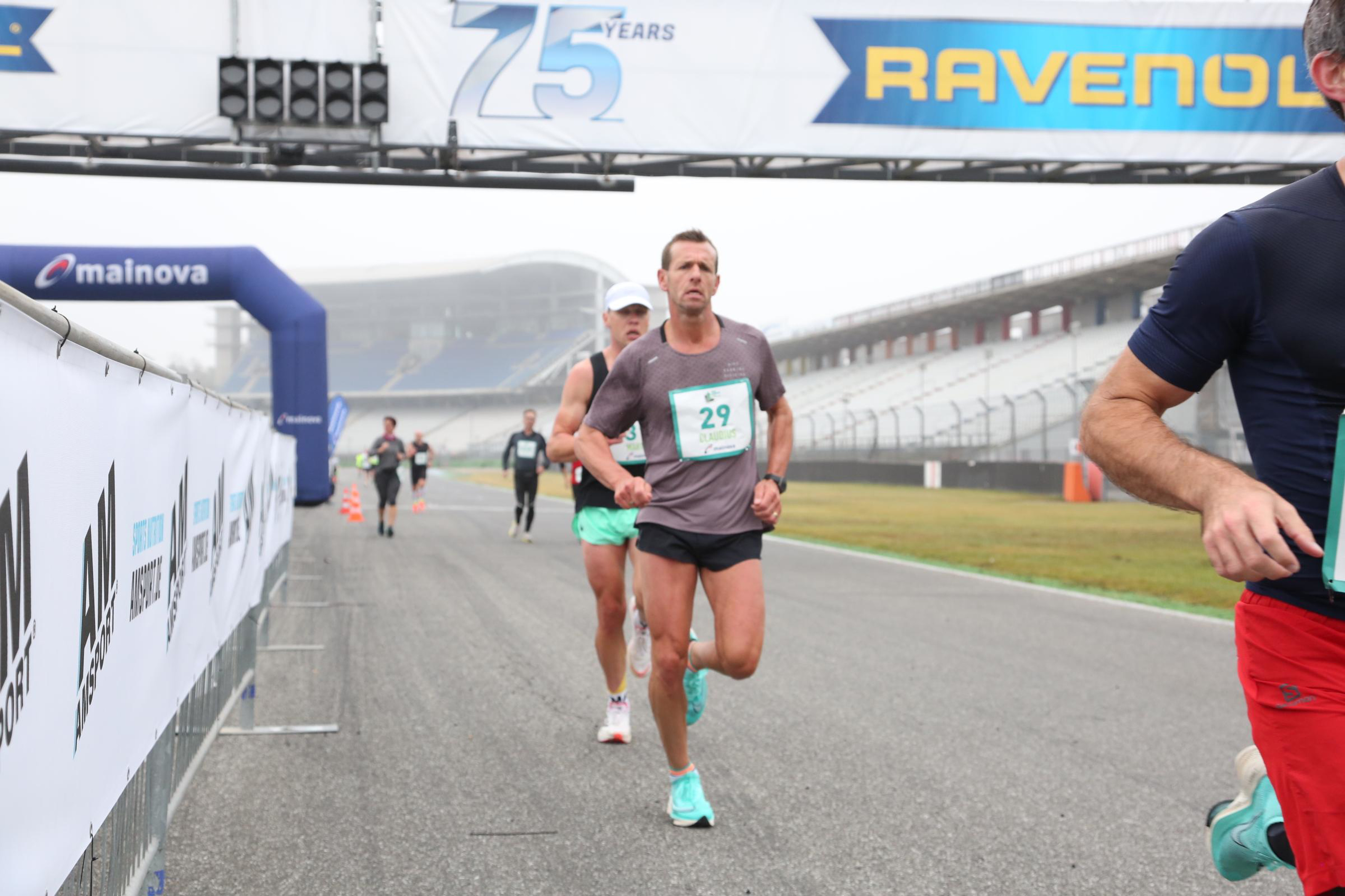 Wie bei vielen anderen Teilnehmern auch zeigte meine GPS Uhr 800m zu viel an, es war extrem schwer bei den vielen breiten Kurven und den Überrundungen wirklich Ideallinie zu laufen. 9 Runden waren beim Marathon zurück zu legen, hört sich langweilig an, war es aber nicht. Es hat schon einen besonderen Flair auf so einem Formel 1 Kurs zu laufen und 9 Runden bedeutet auch neunmal seine Supporter zu sehen. Leider hatte hartnäckiger Nebel den ganz perfekten Tag verhindert, trotzdem waren es wirklich gute Bedingungen.