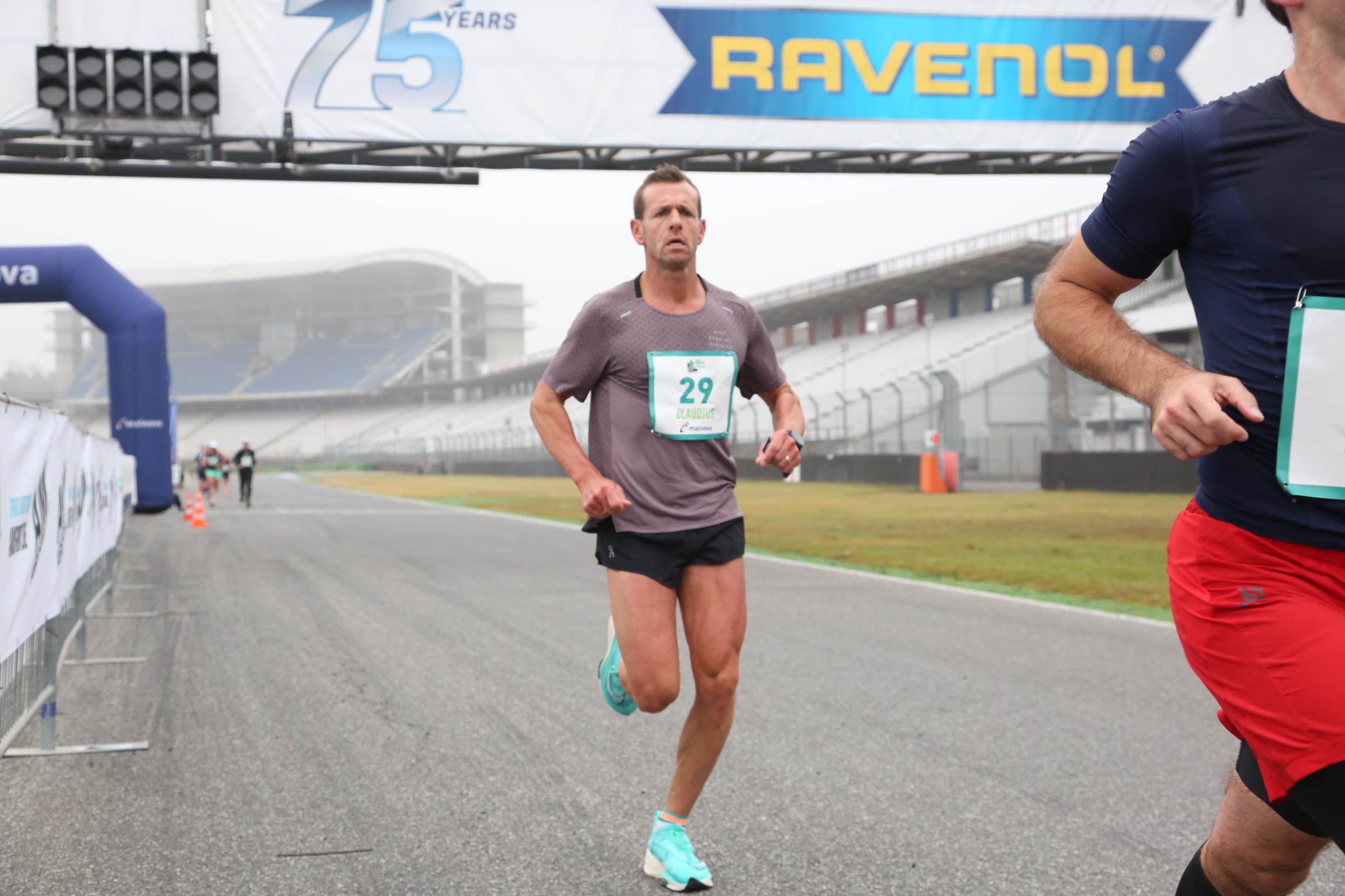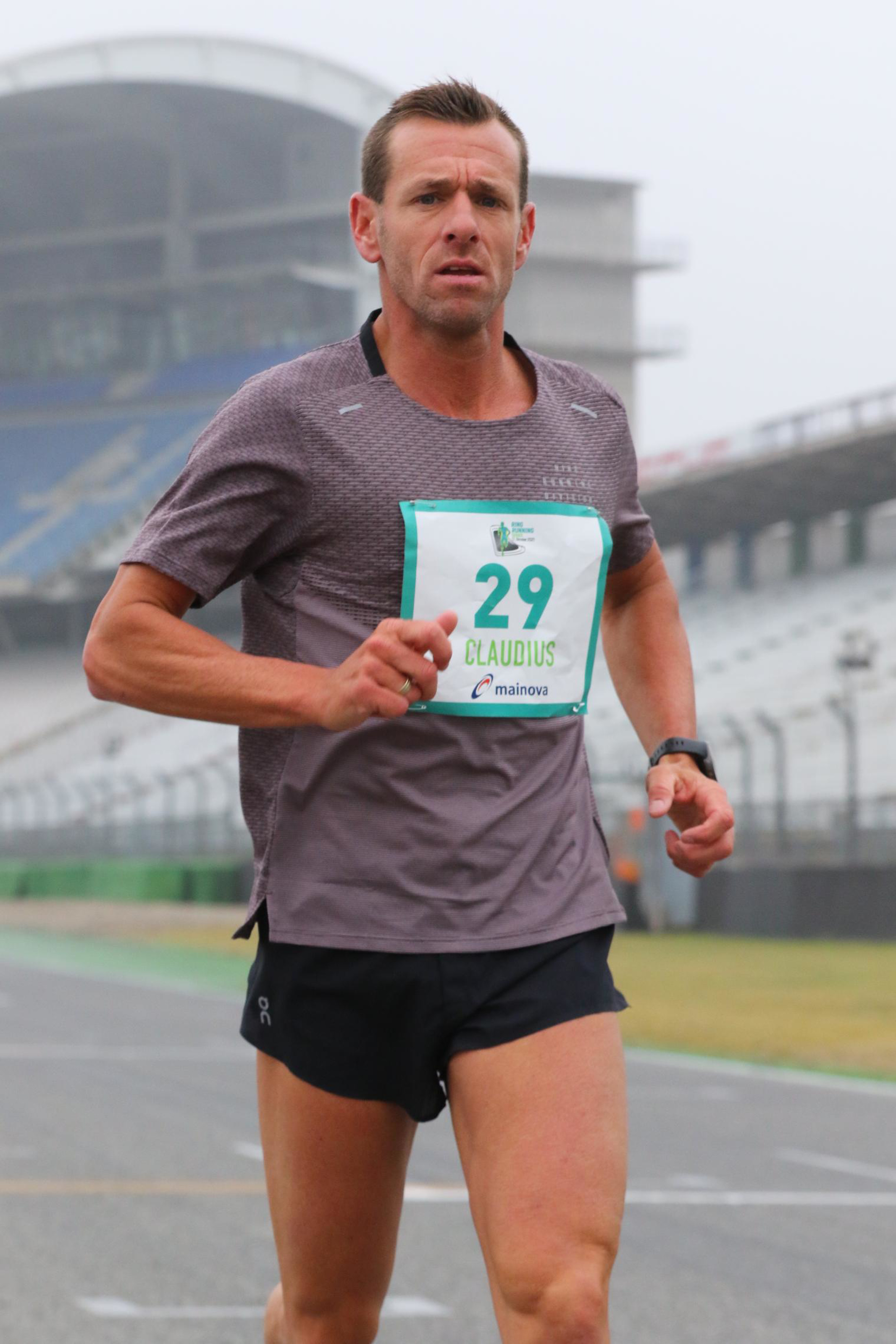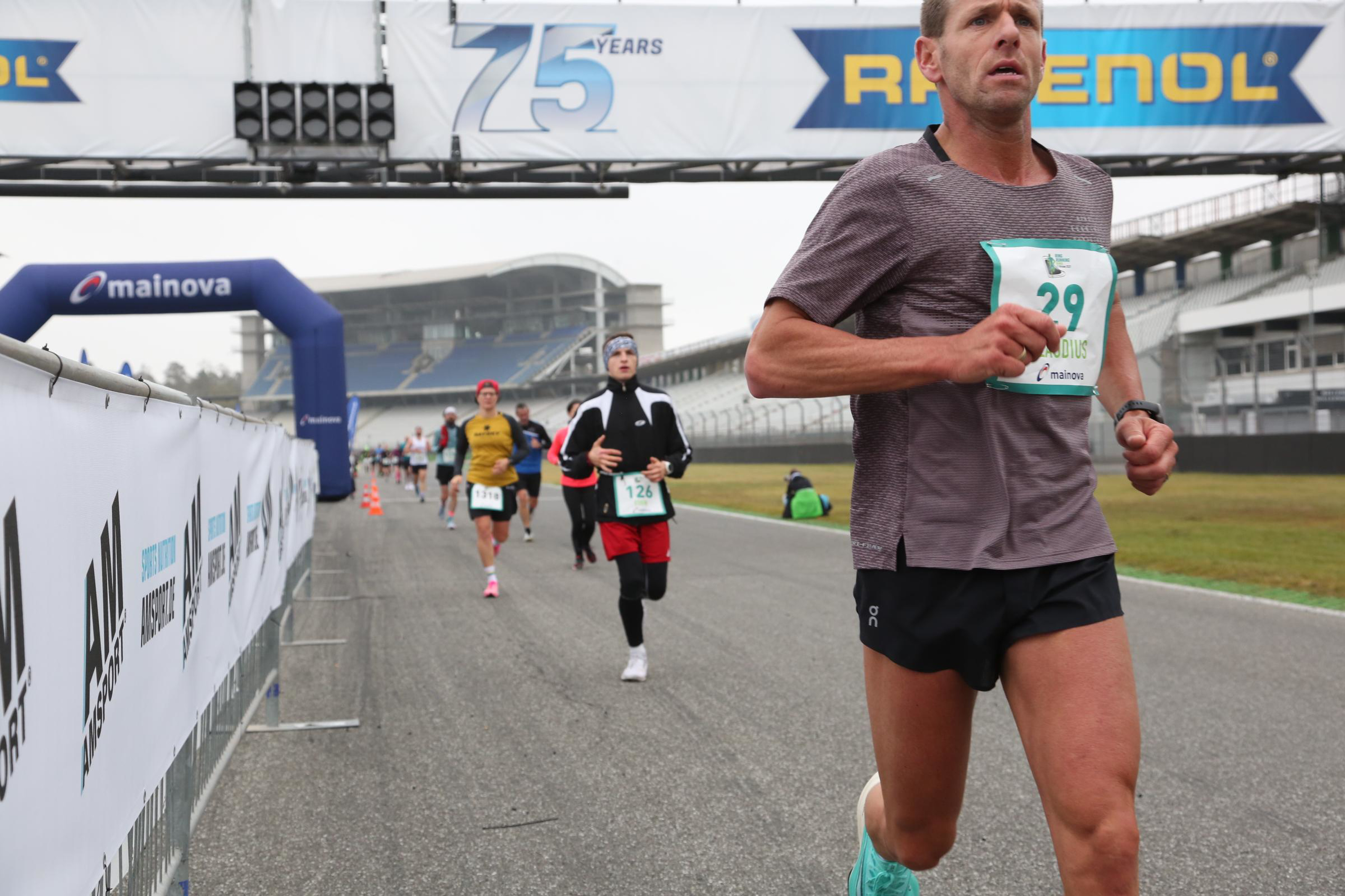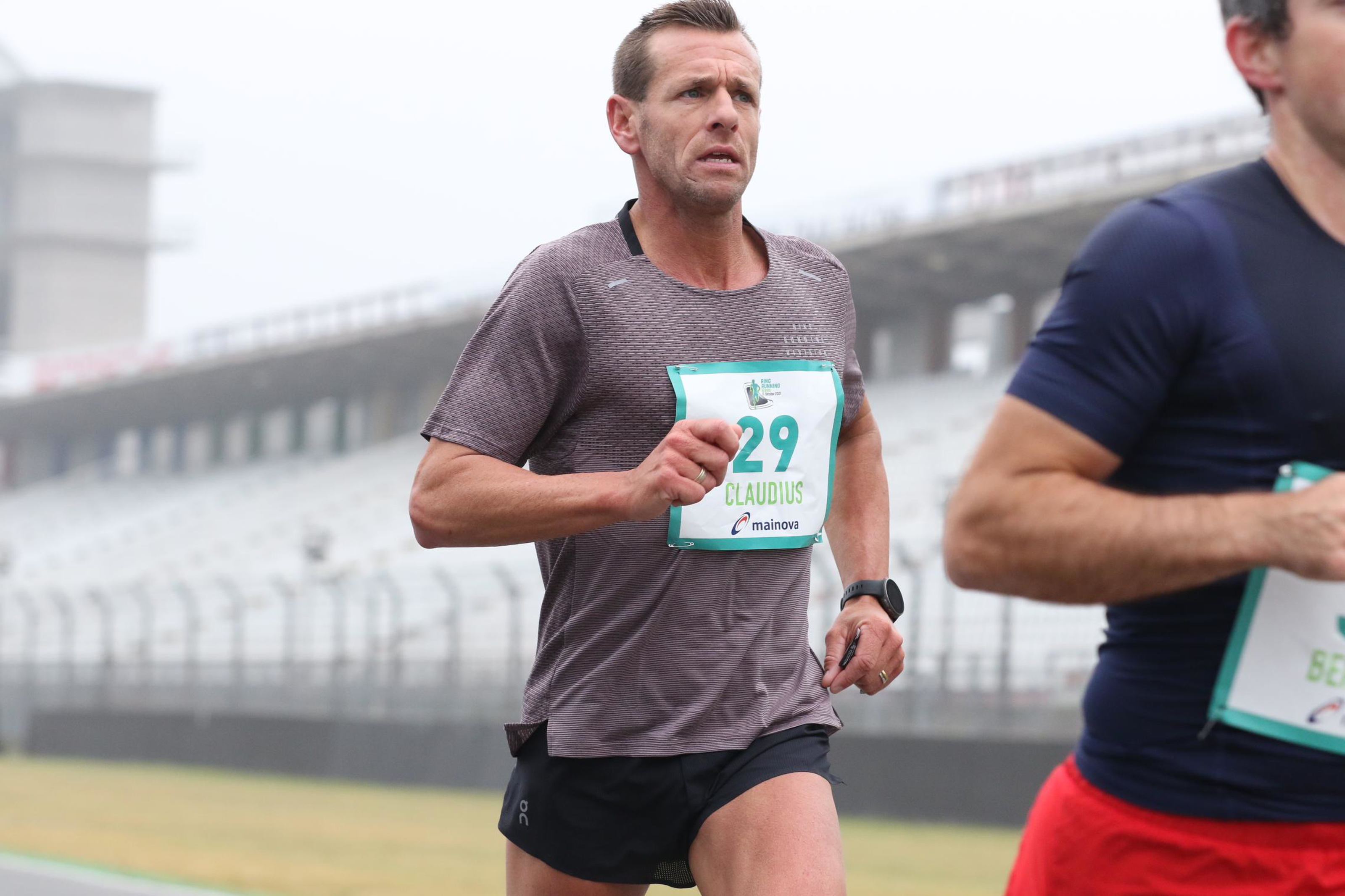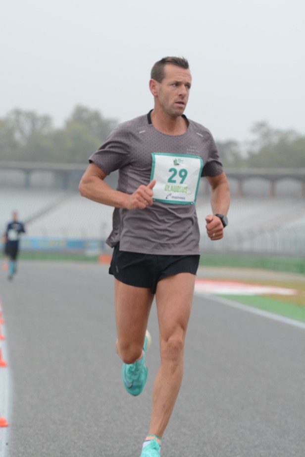 Wie bei vielen anderen Teilnehmern auch zeigte meine GPS Uhr 800m zu viel an, es war extrem schwer bei den vielen breiten Kurven und den Überrundungen wirklich Ideallinie zu laufen. 9 Runden waren beim Marathon zurück zu legen, hört sich langweilig an, war es aber nicht. Es hat schon einen besonderen Flair auf so einem Formel 1 Kurs zu laufen und 9 Runden bedeutet auch neunmal seine Supporter zu sehen. Leider hatte hartnäckiger Nebel den ganz perfekten Tag verhindert, trotzdem waren es wirklich gute Bedingungen.