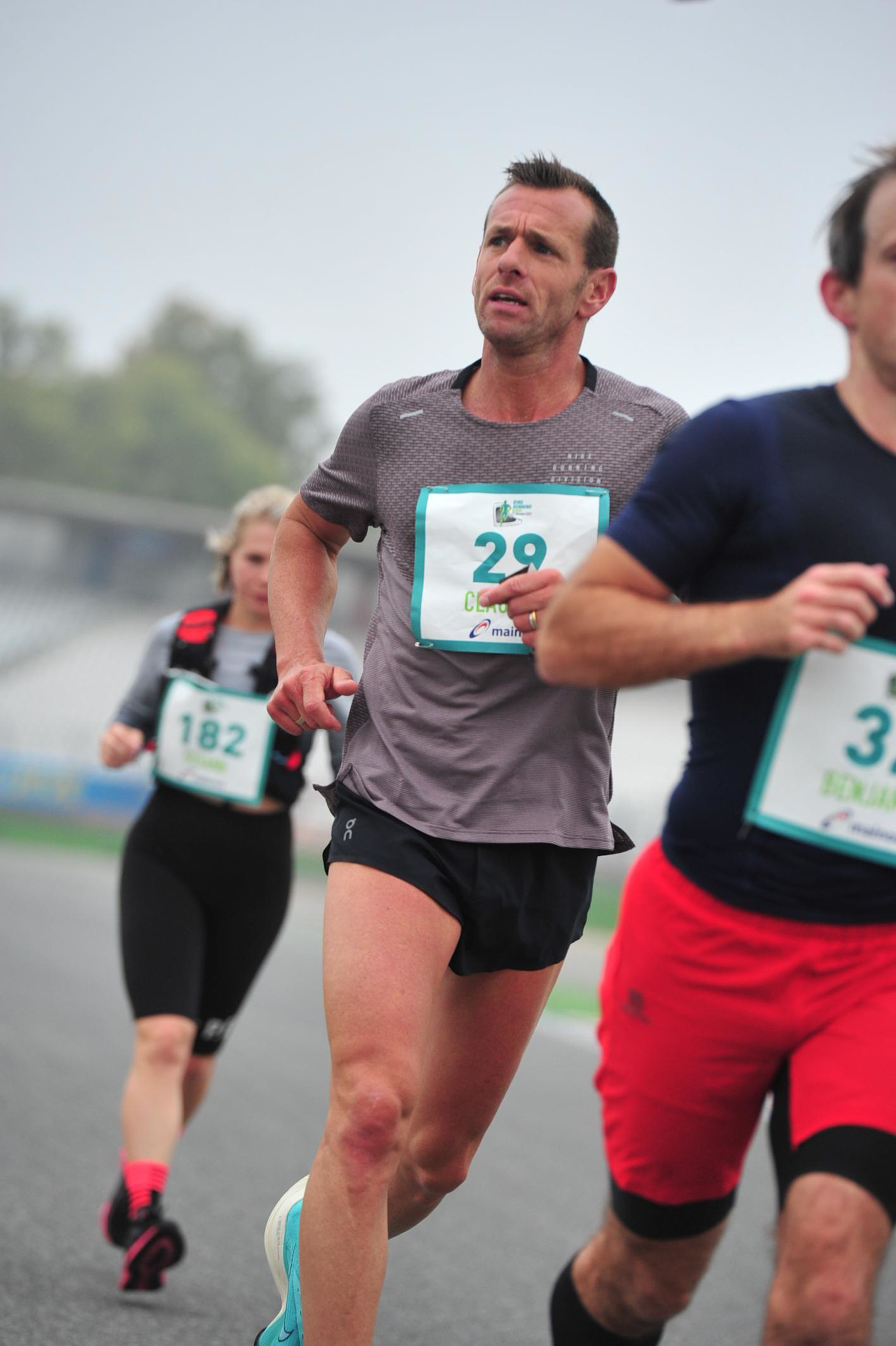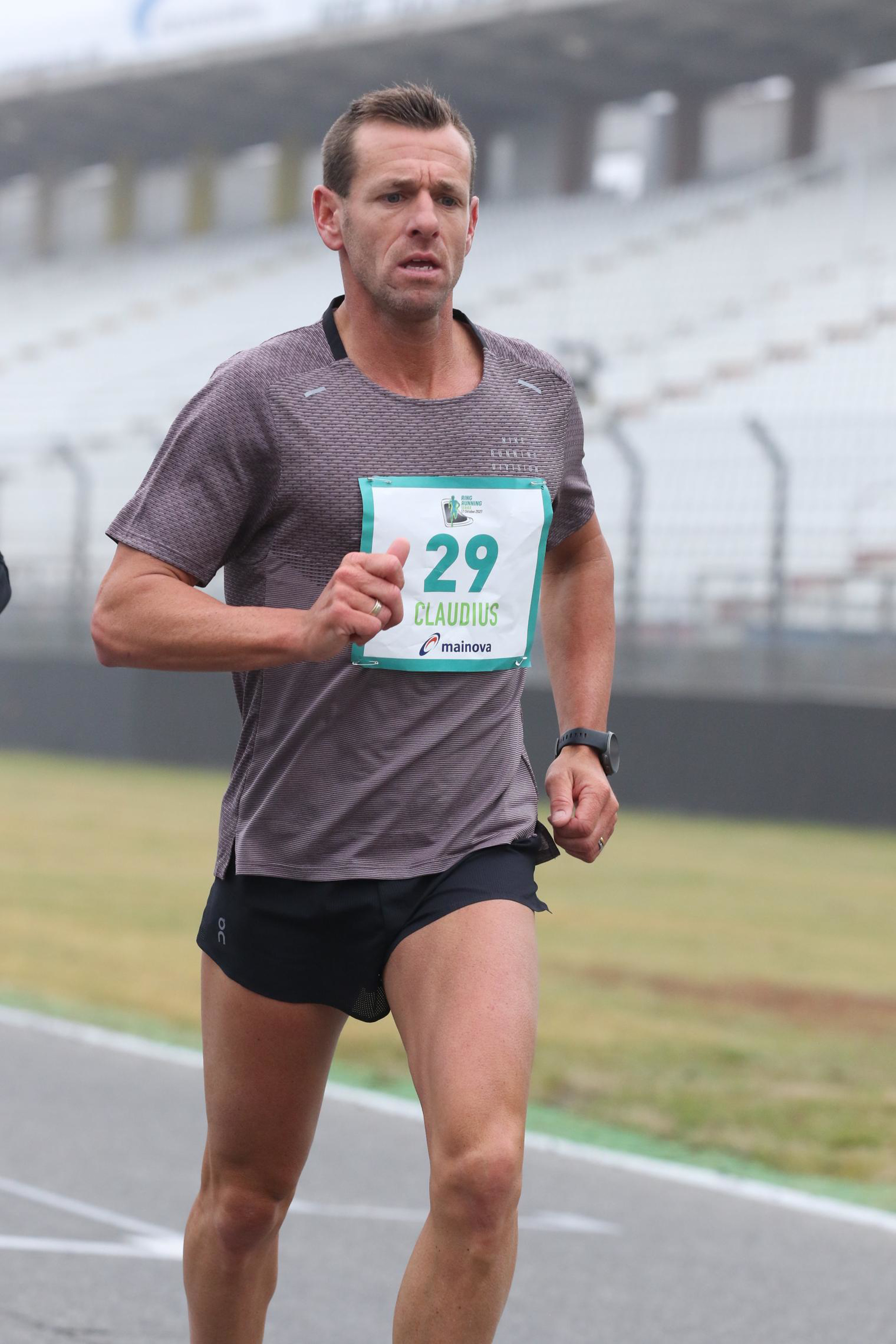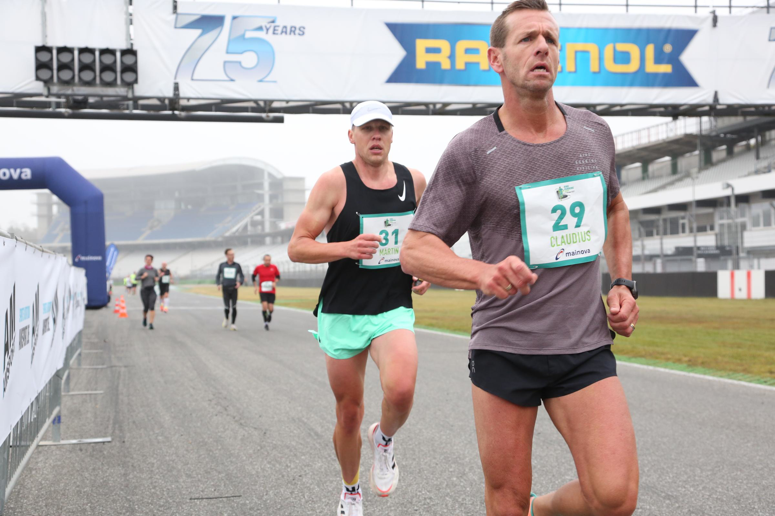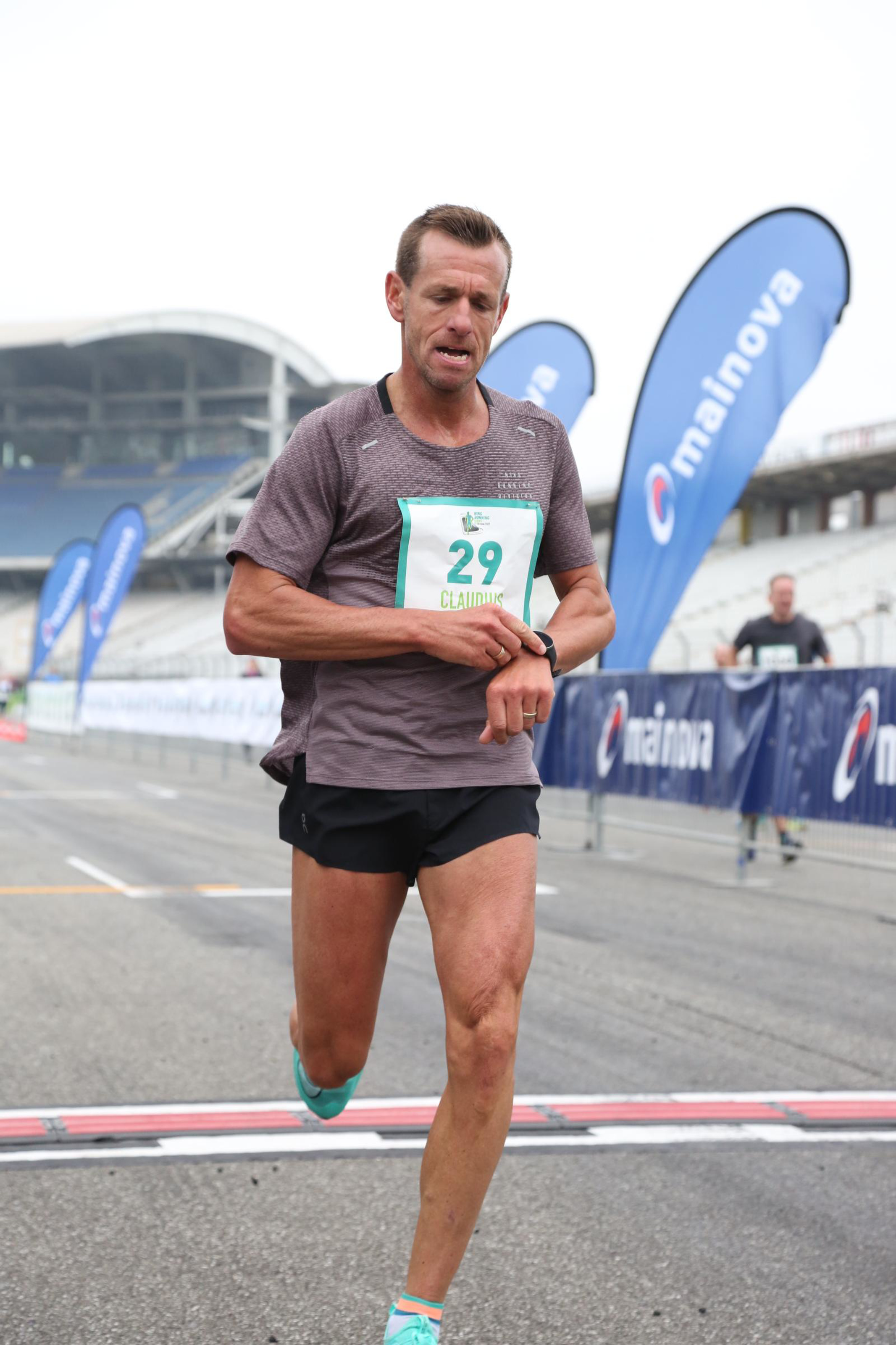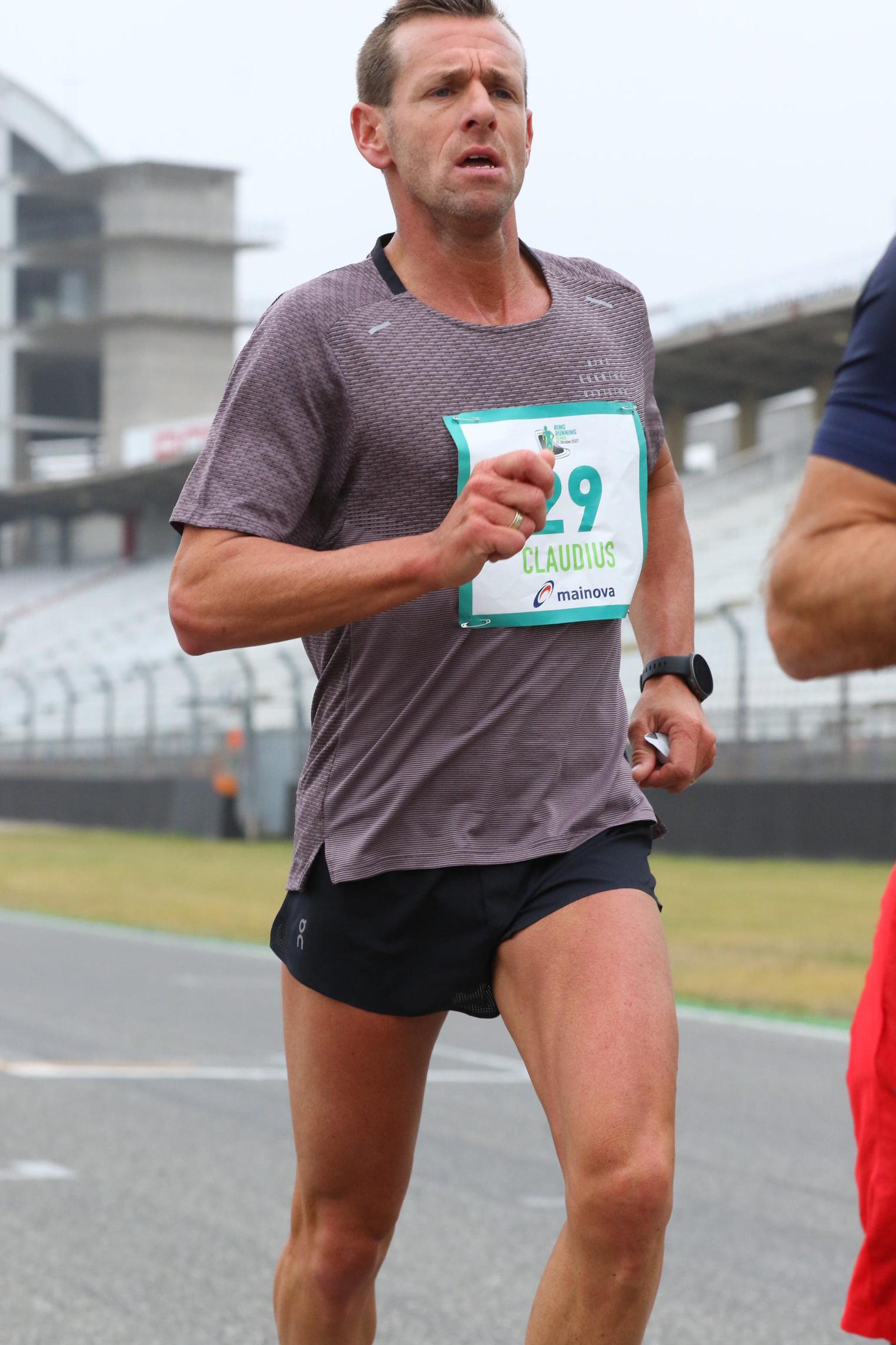 Wie bei vielen anderen Teilnehmern auch zeigte meine GPS Uhr 800m zu viel an, es war extrem schwer bei den vielen breiten Kurven und den Überrundungen wirklich Ideallinie zu laufen. 9 Runden waren beim Marathon zurück zu legen, hört sich langweilig an, war es aber nicht. Es hat schon einen besonderen Flair auf so einem Formel 1 Kurs zu laufen und 9 Runden bedeutet auch neunmal seine Supporter zu sehen. Leider hatte hartnäckiger Nebel den ganz perfekten Tag verhindert, trotzdem waren es wirklich gute Bedingungen.