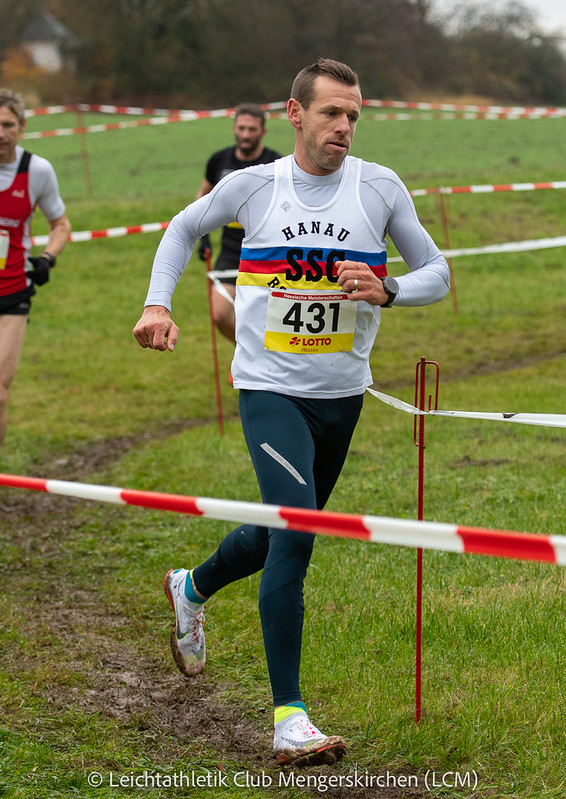 Drei Wochen nach dem Marathon am Hockenheimring startete ich bei den Hessenmeisterschaften im Crosslauf in Mengerskirchen. 5.500m war die Distanz, also ganz andere Fähigkeiten wurden abgefragt als noch in Roth oder eben beim Marathon. 15er Spikenägel waren angesagt, der Boden tief und nass und die Strecke dementsprechend schwer.