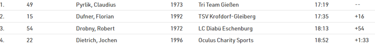 In 34:54min. gewann Claudius deutlich die Hessenmeisterschaft in der AK50, ein Ergebnis, dass so viel Mut machte, es erstmals als Triathlet bei den Läufern und den deutschen Meisterschaften über 10km zu versuchen.