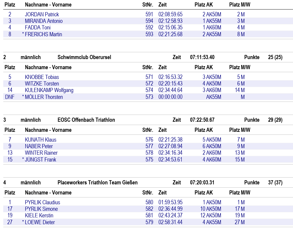 Drei unserer vier Starter des Tri-Team Gießen mussten ins Ziel kommen, damit wir gewertet werden konnten. Wir waren das einzige gemischte Team im Vorderfeld und wurden am Ende Vierter, nur einen Punkt vor Platz 5, aber mit einem großen Abstand auf Platz 3. Drei weitere Mastersliga Wettkämpfe warten noch auf uns, vielleicht schaffen wir es im Saisonverlauf noch einmal uns zu verbessern, wenn nicht können wir mit Platz 4 auch weiterhin gut leben denn es hat bereits in Fulda viel Spaß gemacht und die weiteren Rennen versprechen nicht weniger interessant zu werden.