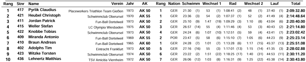 Ergebnis AK50 Gesamtwertung