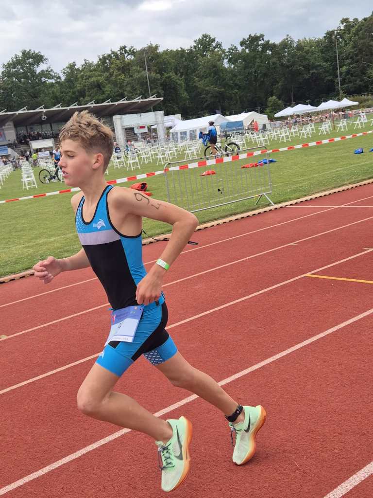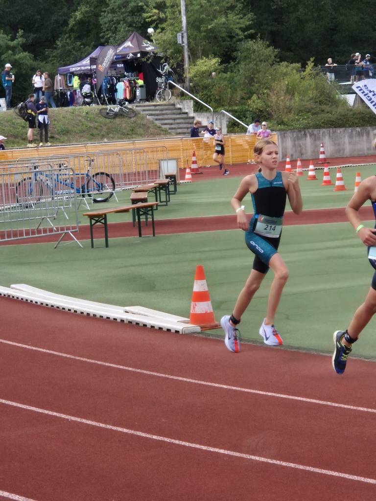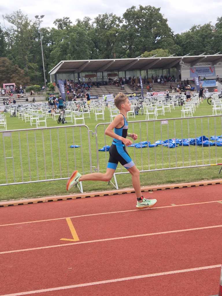 Geschwommen wurde im 50m-Waldschwimmbad auf 7 Bahnen zu jeweils 8-9 Starterinnen und Startern. Nichts für unsere Kinder die diese „Prügelei“ auf den ersten 25m noch nicht gewohnt sind und erst nach der ersten Wende so richtig ins schwimmen kommen. Dann aber läuft es, allerdings mit bereits Rückstand auf die Führenden. Denn schwimmen können die Kinder auf diesem Niveau alle, bereits schneller als viele der erwachsenen Starter. Die größten Zeitunterschiede entstehen, sowohl bei den Schülern als auch bei den Jugendlichen, auf dem Rad, der Disziplin in der das Wachstum den stärksten Einfluss auf die Leistung hat. Liam wurde unter 30 Startern 6. und Lenia belegte den 7. Platz (26 Starterinnen). Wie immer das Wichtigste im Ziel war die Antwort auf die Frage „Hat es Spaß gemacht?“