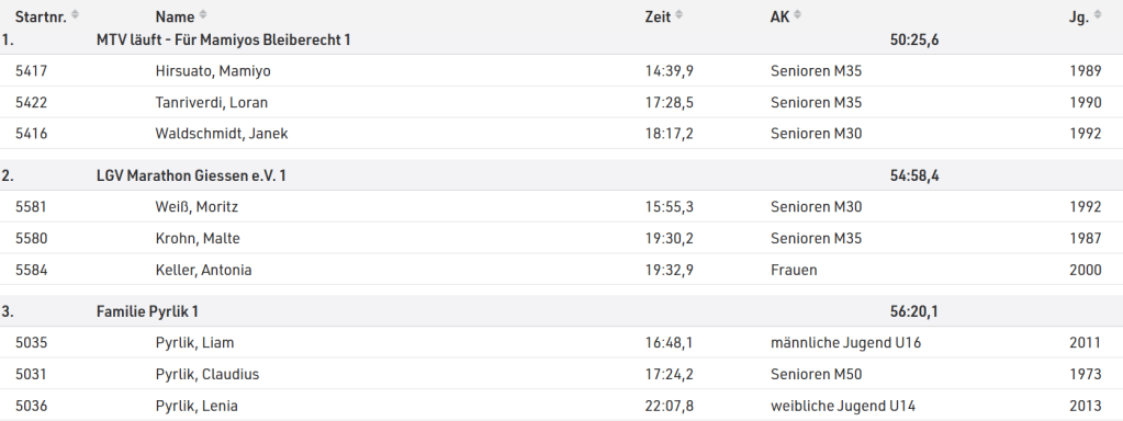Meine Beine waren vom Triathlon in Rodgau, wenige Stunden davor, noch etwas müde, aber zumindest gut aktiviert und so reichte es für Platz 10 in 17,24 Minuten. In der Summe führte das zu einem dritten Platz in der Mannschaftswertung unter 108 Teams!